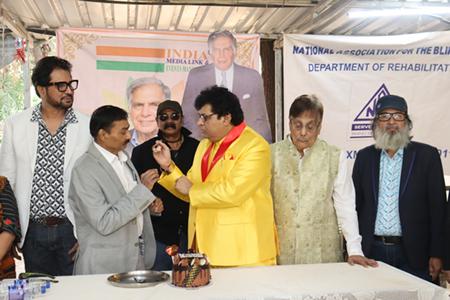 The birthday of India’s world-renowned industrialist and philanthropist Ratan Tata was celebrated at the National Association for the Blind (NAB) Department of Rehabilitation, Anand Niketan, Mahalaxmi, Mumbai. The event was organized by K. Ravi (Dada), Managing Director of India Media Link & Events Management. Alok Kumar Kasliwal (Owner of S. Kumar Group) was the chief guest, and Ravindra Jain was the guest of honor. A selfie point dedicated to Ratan Tata was inaugurated at the venue. Several dignitaries, including actors Bobby Vats, Balasaheb Gaikwad, Suresh Ji, and Pritam Athawale, were present at the social event.